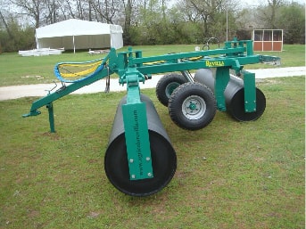 Rodillo auto nivelado con perfecta adaptación al terreno, los cuerpos oscilan por separado actuando como dos rodillos independientes siendo el chasis central el que traquetea según la superficie arrodillada.
