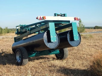 Necesita dos mandos hidráulicos de doble efecto; uno acciona los cilindros de apertura de los cuerpos, el otro las ruedas hidráulicas de transporte.